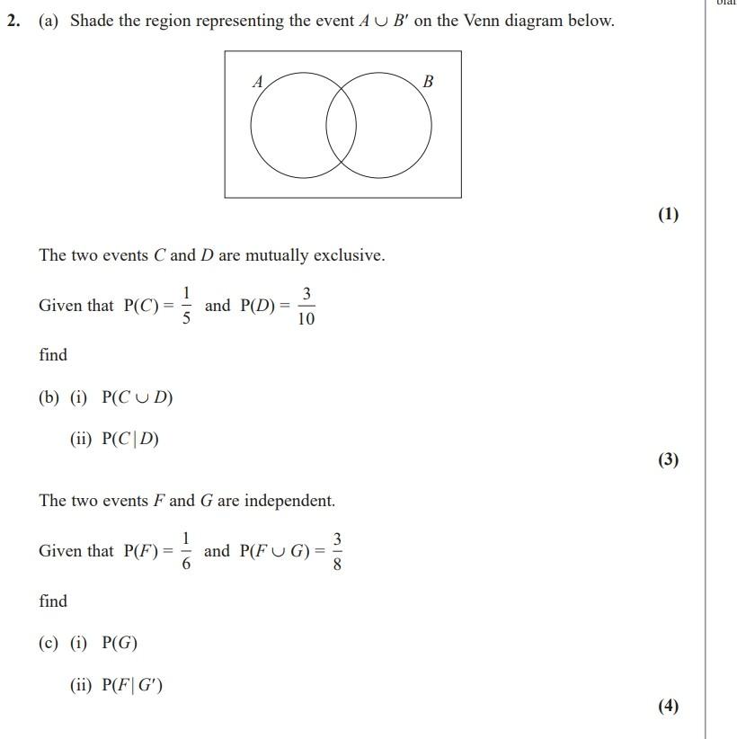 On a Venn diagram shade the regions corresponding to A B. Events of interest can then be indicated by shading appropriate regions of the diagram. Draw U A B Step 1.